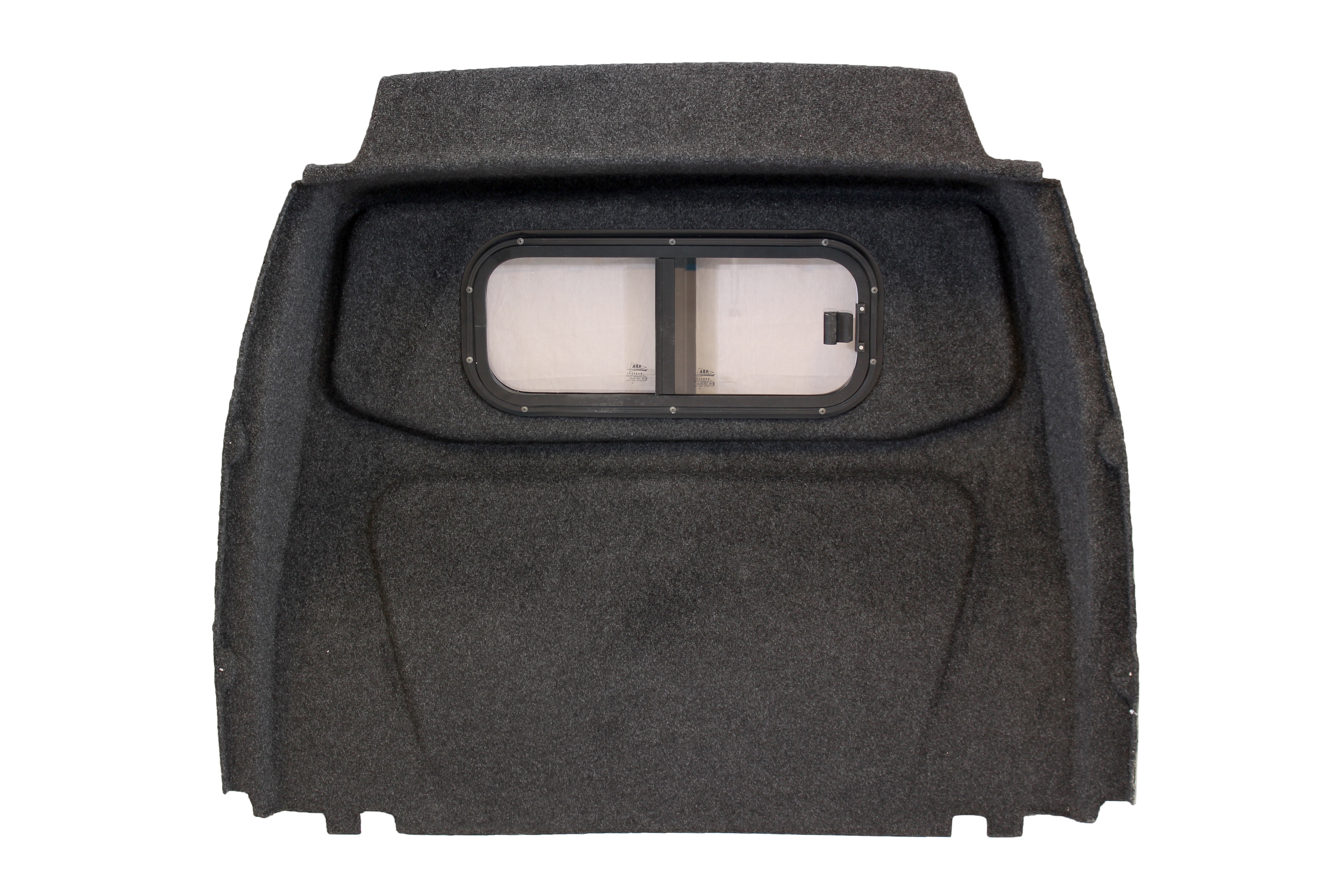 Partition wall B-pillar polyester RAL 7021 with sliding window cab side upholstered Volkswagen Caddy